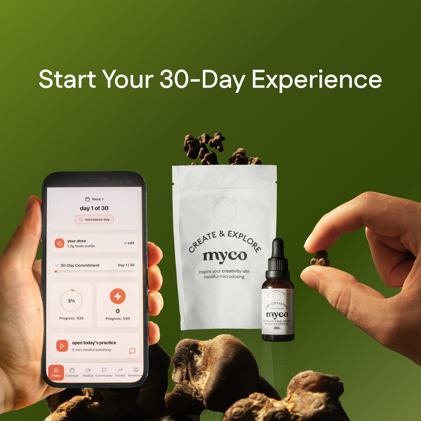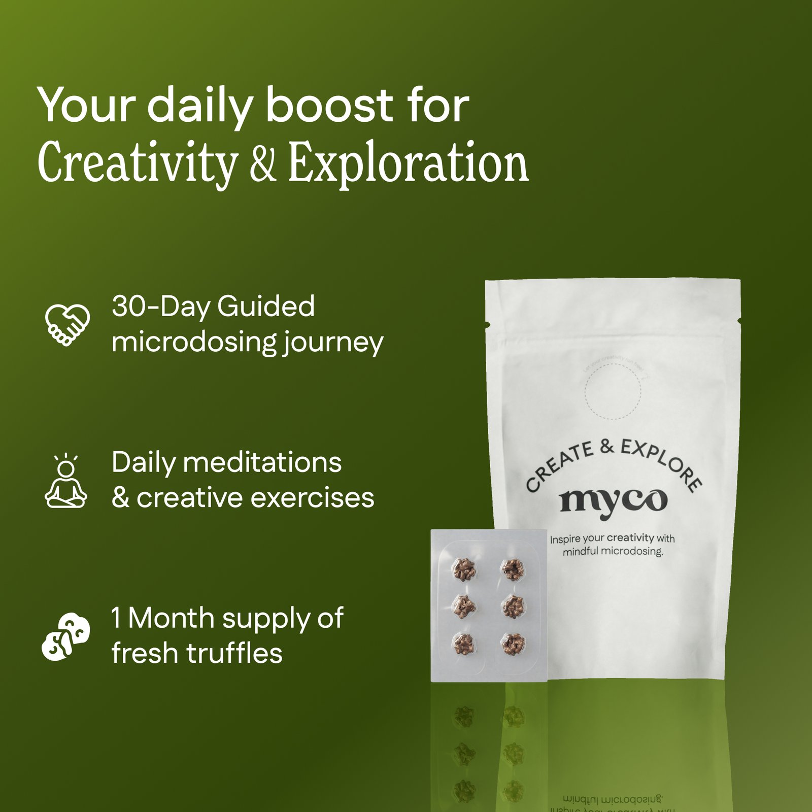 12 microdoses of lab-tested truffles + full access to the journey platform.