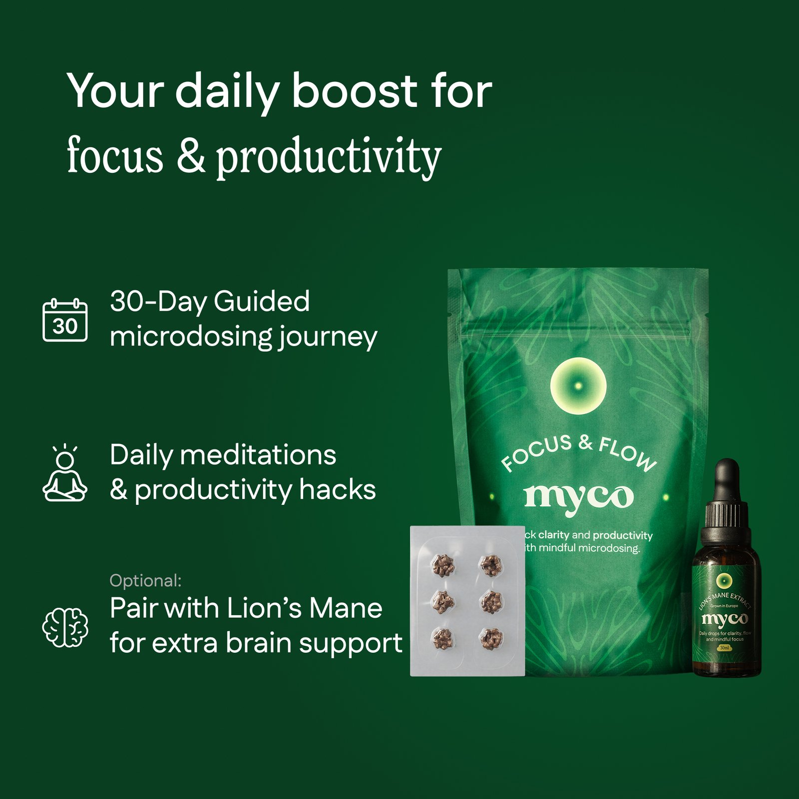 12 microdoses of lab-tested truffles + full access to the journey platform.